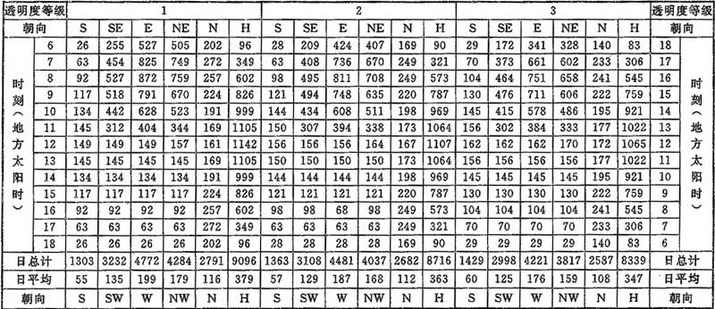 表C.0.1-1 北緯20°太陽總輻射照度(W/m2)