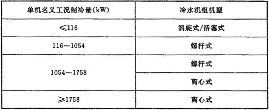 9.2.2 選擇水冷電動壓縮式冷水機組機型時,宜按表9.2.2內的制冷量范圍,經過性能價格綜合比較后確定。